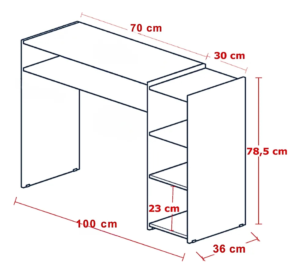Dimensões: 100 cm (Comprimento) x 78,5 cm (Altura) x 36 cm (Profundidade)