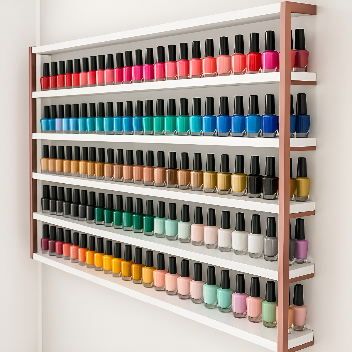 Organize e exiba seus esmaltes com praticidade e sofisticação. Com um design compacto e funcional, este expositor é a escolha ideal para aproveitar melhor o espaço disponível.